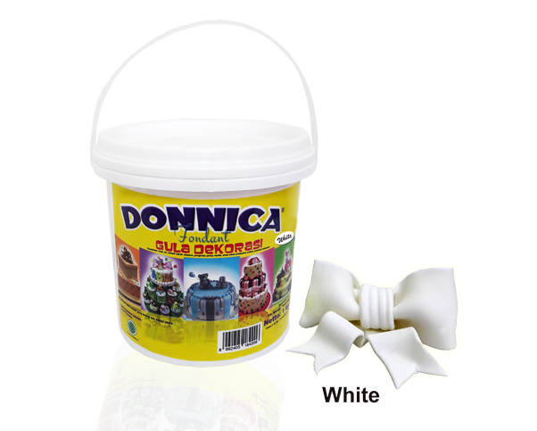 Donnica Fondant AllDonnica Fondant adalah bahan yang terbuat dari gula digunakan sebagai penutup kue ulang tahun, kue pengantin, aneka dekorasi kue, tinggal diuleni untuk membentuk adonan tebal maupun tipis dan halus namun elastis.